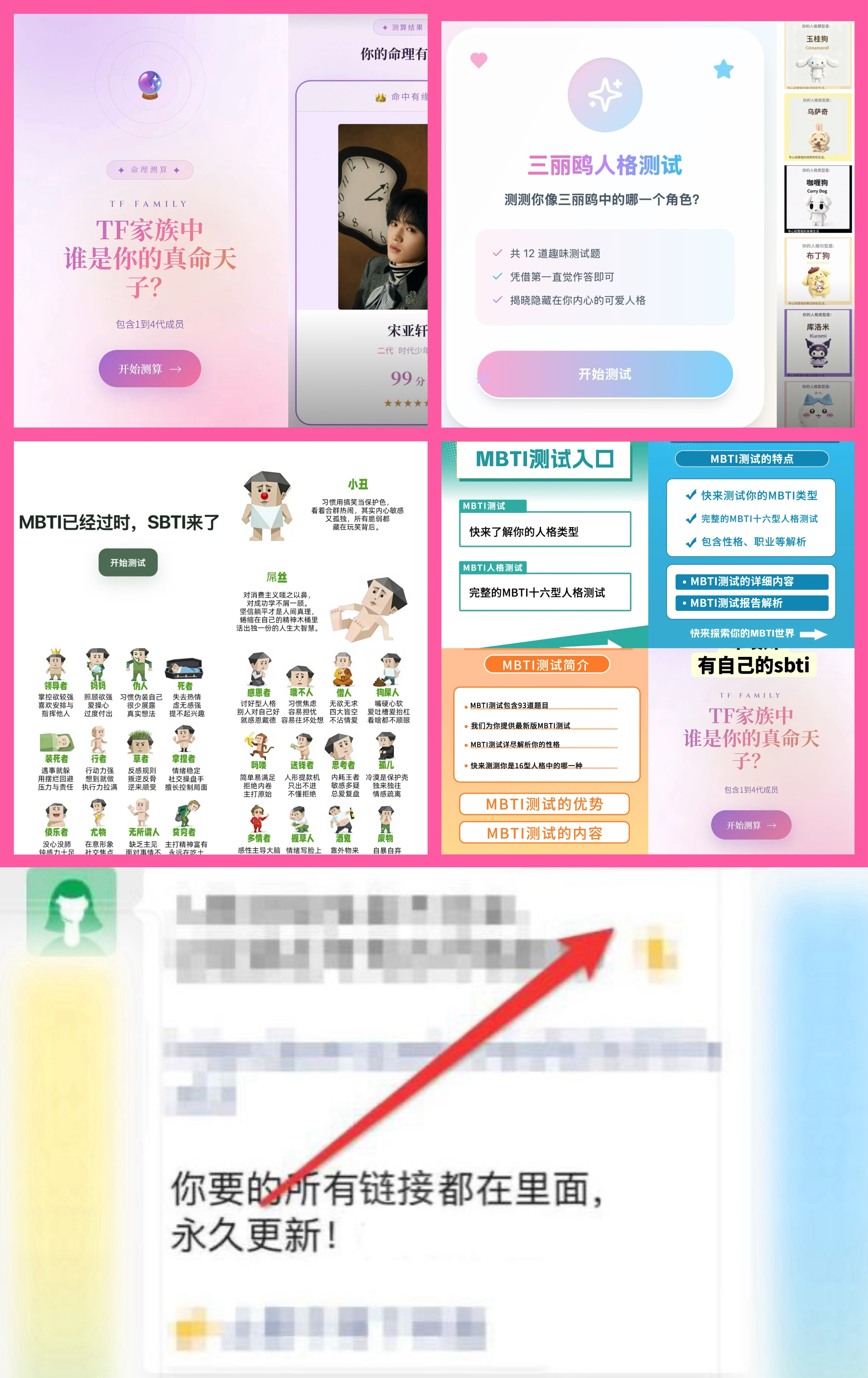 你将免费得到:SBTI MBTI hellokitty 时代峰峻 十个勤天 SVT ABO 测试链接